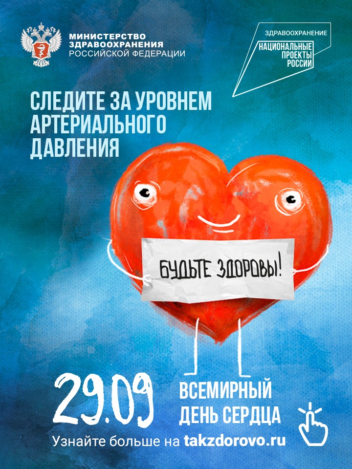 29 сентября отмечается Всемирный день сердца. В преддверии этой важной даты Национальный медицинский исследовательский центр терапии и профилактической медицины, ВОД «Волонтеры-медики», АО «Нижфарм» и АНО «Национальные приоритеты» при поддержке Минздрава России организуют Всероссийскую акцию «Оберегая сердца». Профилактика и ранняя диагностика сердечно-сосудистых заболеваний - один из приоритетов нацпроекта «Здравоохранение».